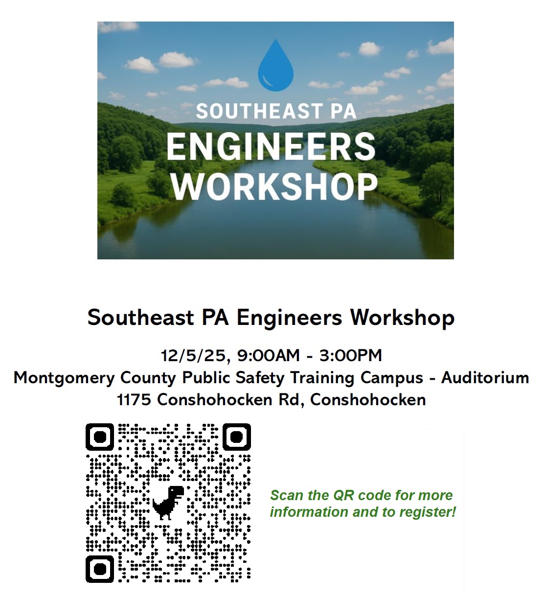 Join the Southeast PA Conservation Districts (Montgomery, Bucks, Chester and Delaware) on Friday December 5th for an informative workshop geared towards NPDES design engineers & consultants.